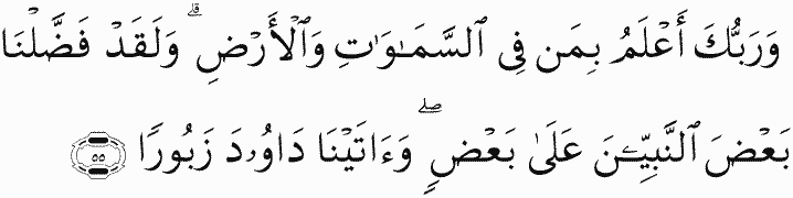 Dan Tuhanmu lebih mengetahui siapa yang di langit dan di bumi. Quran surah Al Isra 55 QS 17.