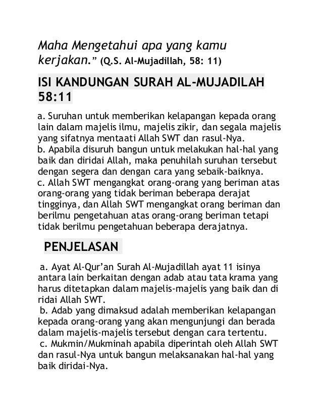 Baca: Jelaskan Kandungan Surah Al Mujadalah Ayat 11 Brainly Co Id |